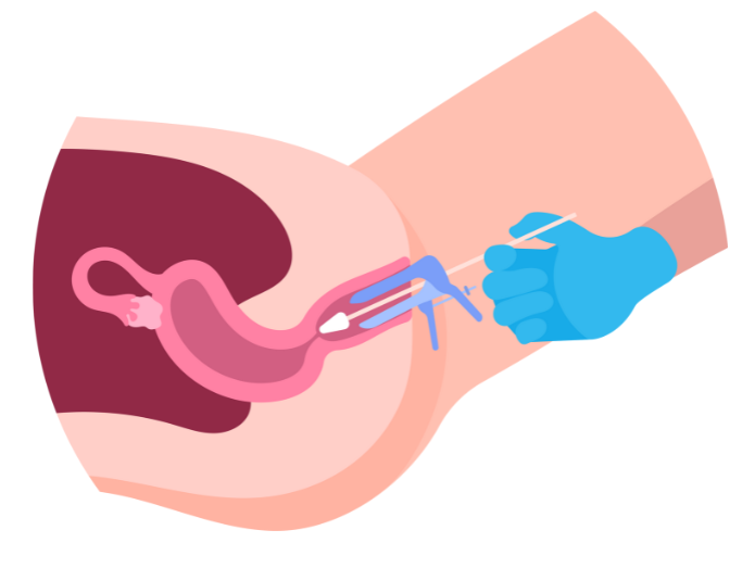 Collection: The healthcare provider will use a speculum to gently open the vaginal walls and collect cells from the cervix using a small brush and spatula or a “broom”.